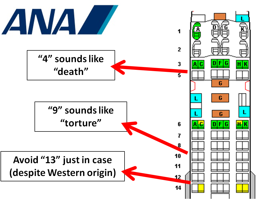 I gave a number of examples (fish in a barrel stuff, really…) of superstitions that people believe in. Examples included (i) Laurent Blanc, the French soccer captain, kissing the bald head of Fabien Barthez, the French goalkeeper, prior to each game in the 1998 Soccer World Cup, (ii) the fact that a lot of aeroplanes are missing rows which correspond to “unlucky” numbers (see the image of the All Nippon Airways jet which is missing several), (iii) power bands as 21st century rabbits’ feet, and (iv) faith healers. I made the point that these were expensive (power bands) or dangerous (faith healers, when used instead of conventional medicine) and asked why we still have them.